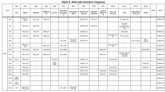 아래 표와 같이 15개씩 9개의 구역으로 나뉘어져 있다.(ABCDEFGHI) 이중 핀 100개짜리 칩은 Ports F, G를 사용하지 않는다고 한다.